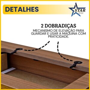 Indicado para máquinas de costura antigas com medidas de 37x18cm, que possuam dois furos na parte traseira para encaixe das dobradiças.
