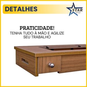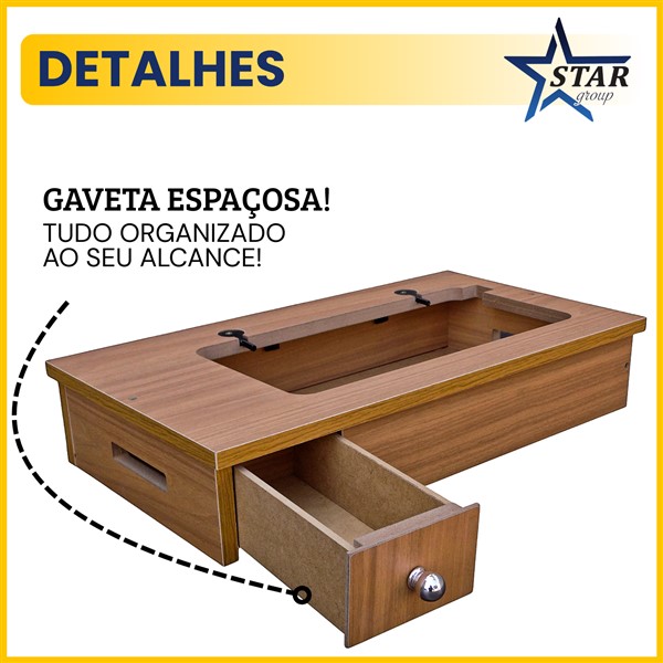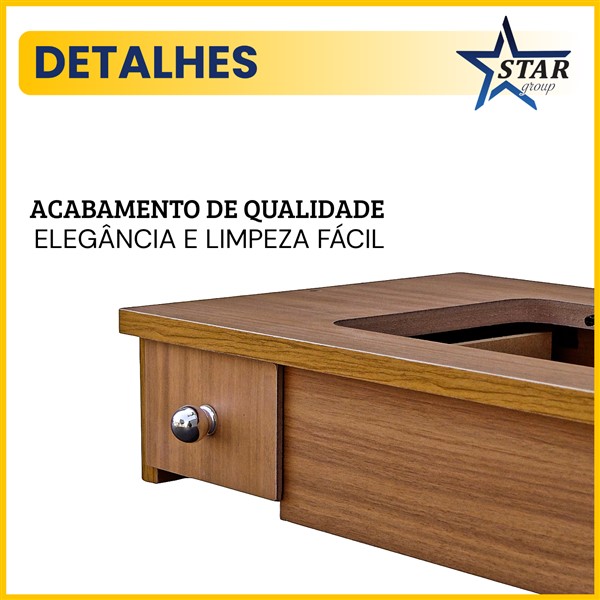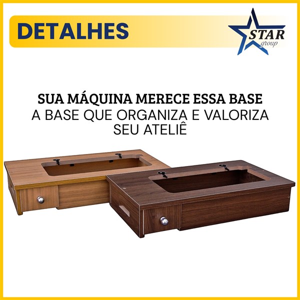 Mais do que praticidade, essa base foi pensada para trazer organização e mobilidade ao seu dia a dia de costura. Com a gaveta embutida, você mantém bobinas, linhas e acessórios sempre à mão, sem ocupar espaço extra no ambiente.