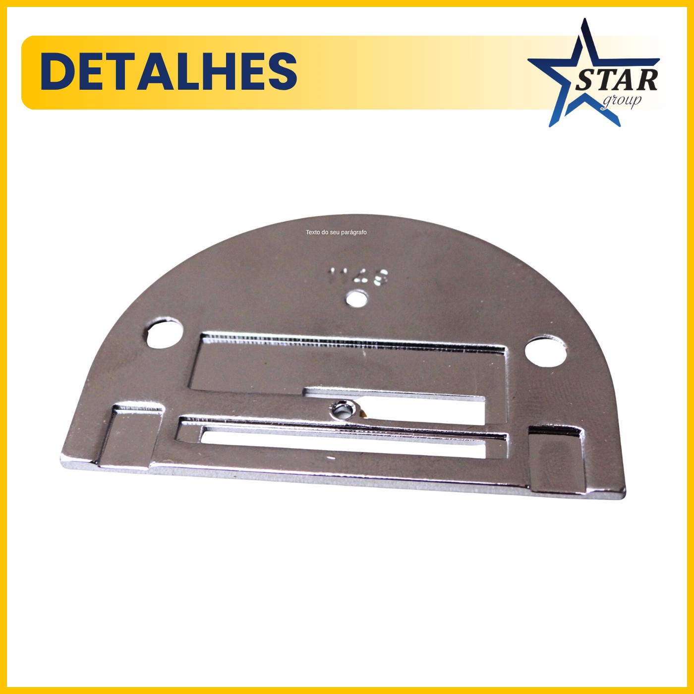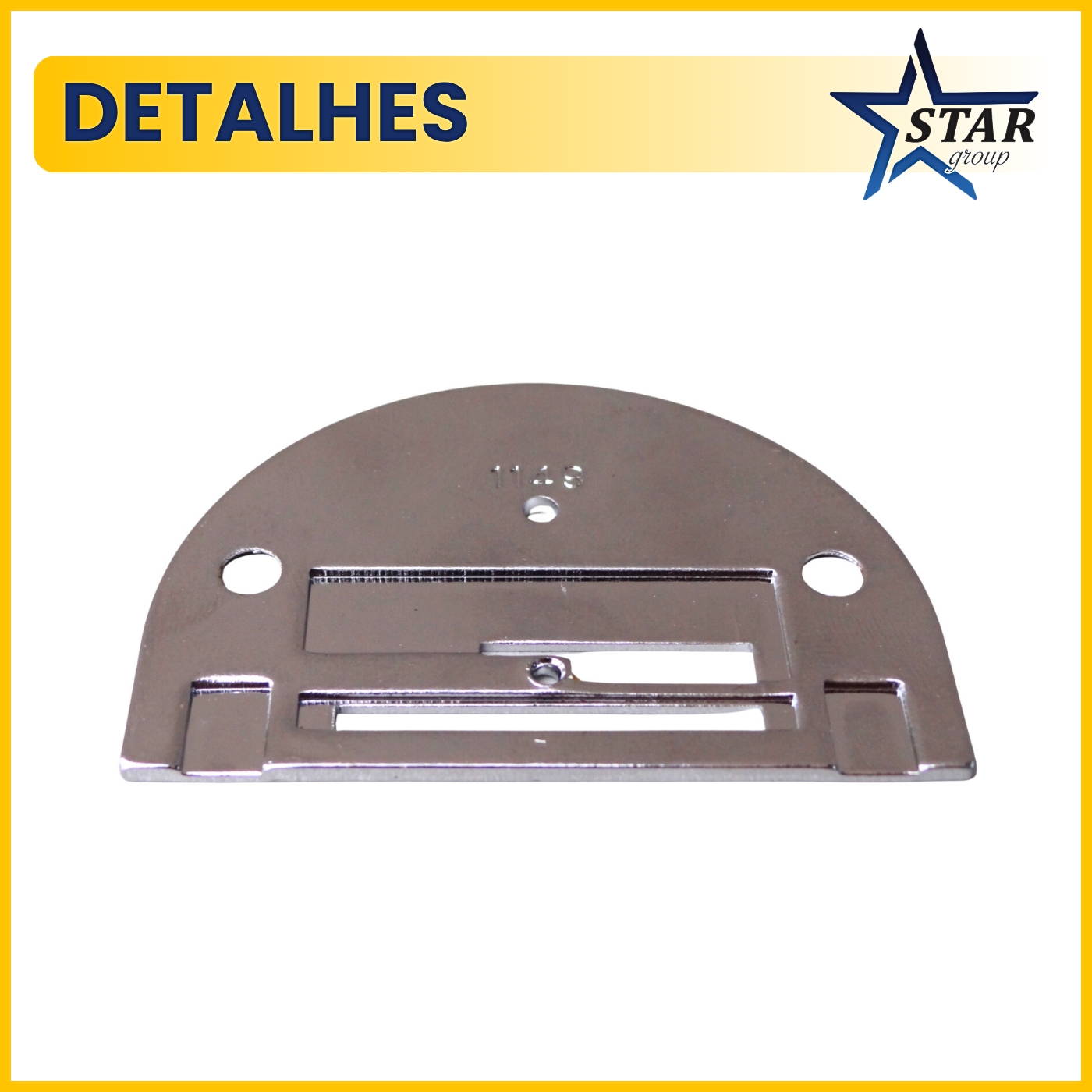Peça metálica instalada sob o calcador, a chapa da agulha apoia o tecido, guia a passagem da agulha e acomoda a janela dos dentes de transporte. Com superfície lisa e furação precisa, contribui para pontos mais consistentes, menor atrito no início da costura e avanço regular do material — essencial para um acabamento limpo e uniforme.