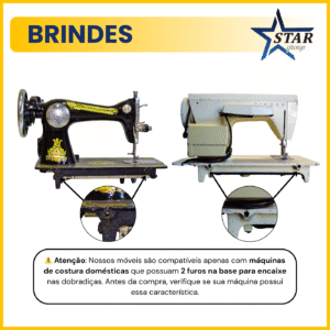 ✔ Compatível com máquinas de 37x18cm, que possuam os dois furos traseiros para encaixe das dobradiças.