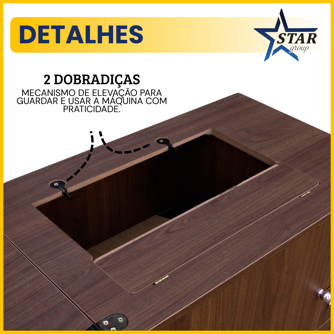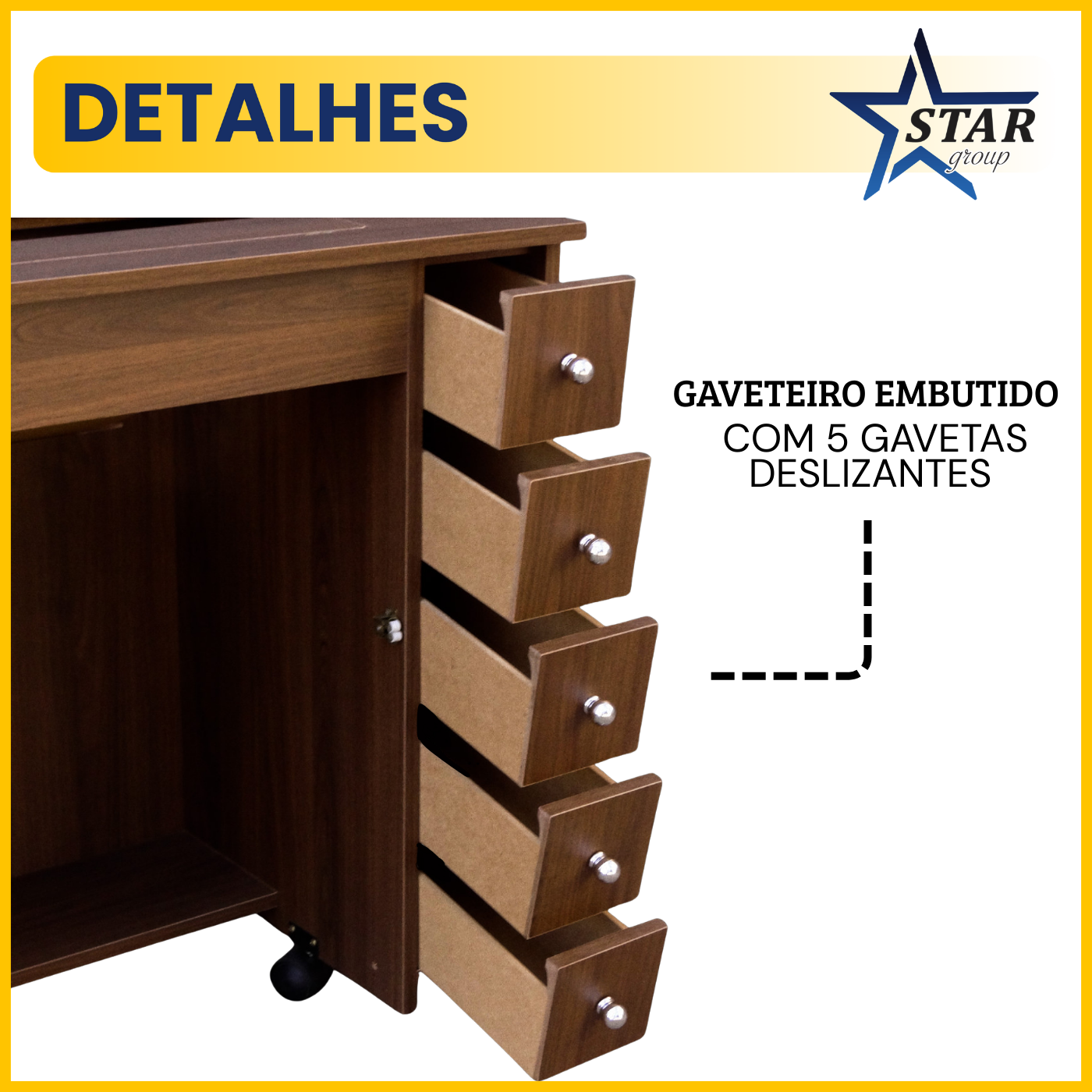 GABINETE LUXO COM GAVETEIRO – PARA MÁQUINA DE COSTURA DOMÉSTICA