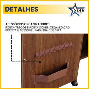 ✔ Modelo mais completo da linha: 5 gavetas amplas, perfeitas para guardar linhas, agulhas, tesouras, fita métrica e todos os acessórios de costura em um só lugar.